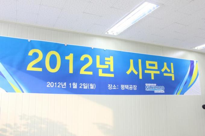 1월 2일(월) 평택공장 대강당에서 전 임직원이 참석한 가운데 2012년 임진년의 시작을 알리는 시무식이 개최되었다. 10년, 15년 근속자와 특허 취득 공로자의 표창을 시작으로 박민환 회장의 신년사가 이어졌으며, 2012년의 각오를 새롭게 다지는 시간이 되었다.