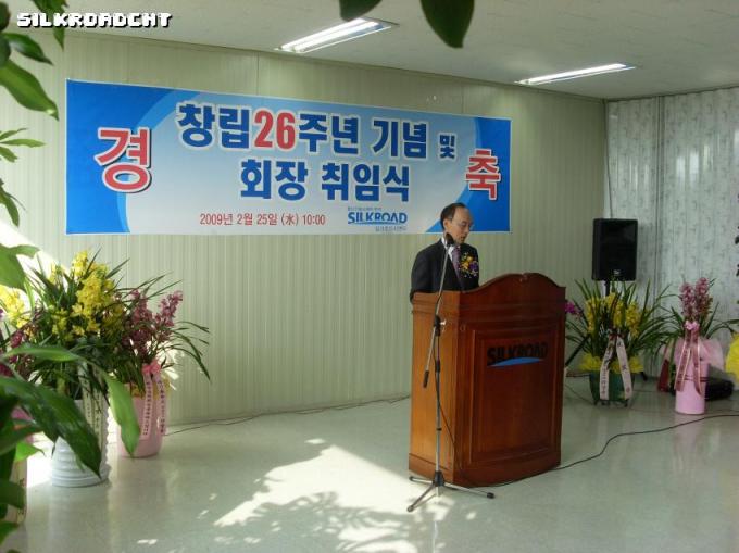 지난 2월 25일 전임직원이 참석한 가운데 평택공장에서 실크로드시앤티 26주년창립기념 및 회장취임식이 개최되었다.