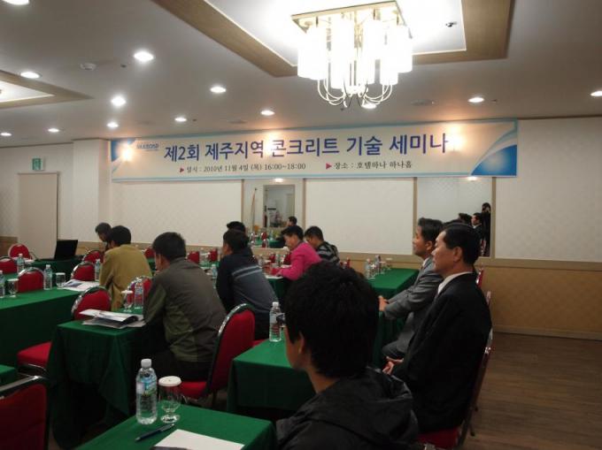 2010년 11월 4일, 실크로드시앤티가 주관한 <콘크리트 기술세미나>가 제주하나호텔에서 개최되었다. 제주레미콘회사조합 이사장과 제주지역 레미콘 업체 실무자들이 참가한 이번 세미나는 해양 구조물 및 초고층 건물 적용 PCA 특성 및 사례를 공유하고 향후 개발 방향을 모색하는 기회가 되었다.