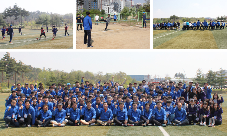 4월 22일 토요일 평택 중앙공원에서 2017년 SILKROAD 춘계 체육대회가 개최됐다. 경기는 본사와 태안공장 임직원으로 구성된 청팀, 평택공장과 기술연구소 임직원으로 구성된 백팀으로 나뉘어 진행됐다.