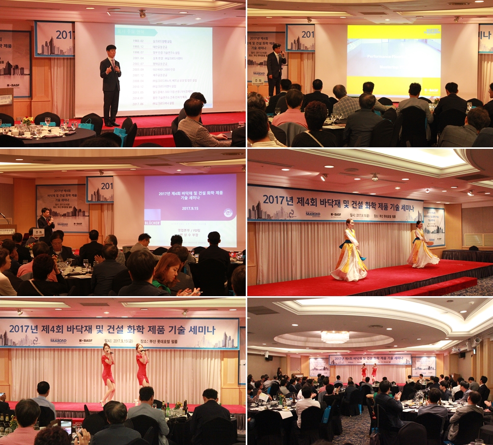 실크로드티앤디가 2017년 9월 15일 부산 롯데 호텔에서 <제4회 바닥재 및 건설 화학 제품 기술 세미나>를 성황리에 개최했다. 이번 기술 세미나는 제1부 실크로드티앤디의 회사 소개를 시작으로 글로벌 화학 기업 BASF와 고품질 산업용 바닥재 UCRETE 제품 설명 그리고 업계 최초 HACCP 마크를 획득한 친환경 배수로 전문 기업인 BLücher의 회사 및 제품 소개로 이어졌다.