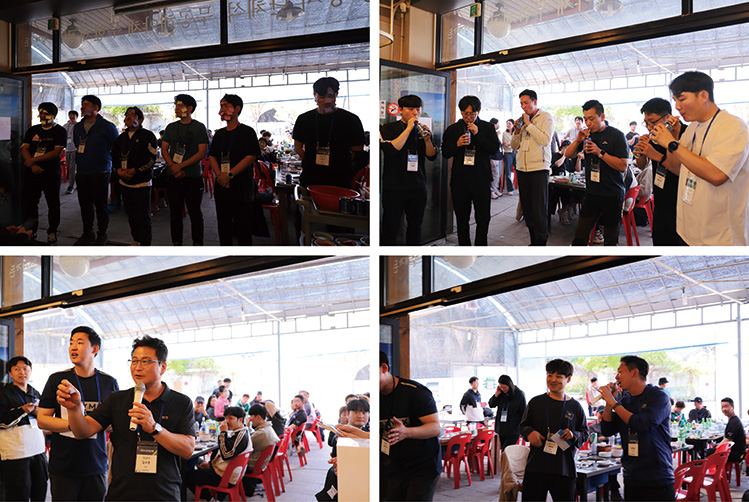 하산 후 뒤풀이에서는 신규 입사자의 인사와 포스트잇 빨리 떼기, 콜라 빨리 마시기 등의 게임도 이어졌다. 점심 식사 시간에는 오랜만에 만난 임직원들이 함께 소통하며 즐거운 시간을 보냈다. 임직원을 위해 마련된 행운권 추첨 이벤트를 끝으로 공식 일정이 마무리됐다.