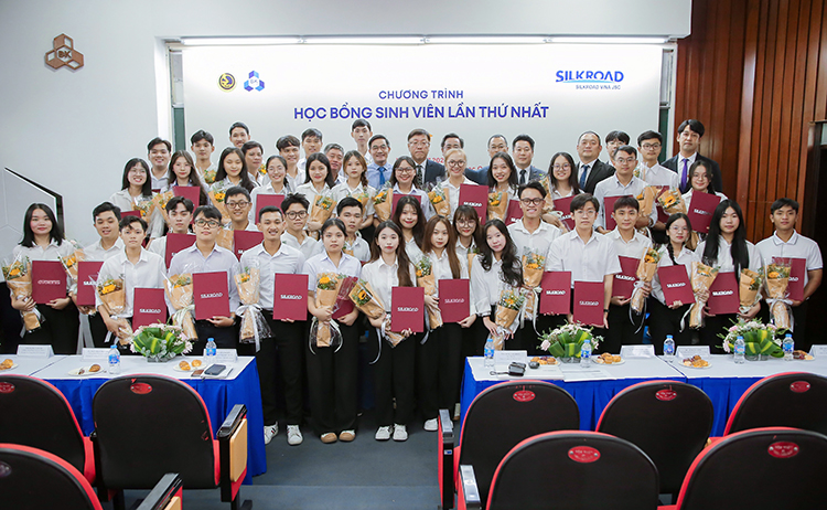 đoàn SILKROAD - doanh nghiệp phụ gia bê tông hàng đầu tại Hàn Quốc và Việt Nam đã tổ chức Lễ trao tặng chương trình “Học bổng sinh viên lần thứ nhất năm 2024”. Tại sự kiện, 40 suất học bổng đã được trao cho các bạn sinh viên khu vực Nam bộ, Trung bộ có tinh thần vượt khó, đạt thành tích học tập xuất sắc, năng nổ trong các hoạt động đóng góp cho xã hội và đạt nhiều giải thưởng trong các cuộc thi về năng khiếu nghệ thuật, thể thao. Mỗi suất học bổng trị giá 20 triệu đồng, tổng giá trị học bổng được trao là 800 triệu đồng.