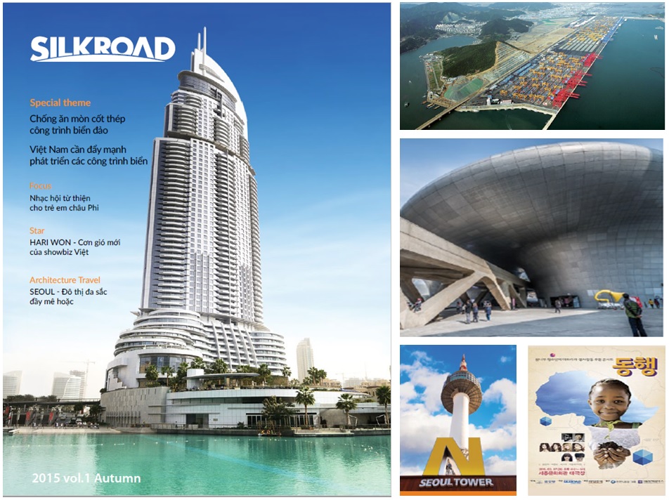 Thêm vào đó, tạp chí giới thiệu về sản phẩm PCI3000 là chất giảm nước AE hiệu quả cao chống nước biển ăn mòn của SILKROAD HANOI, phỏng vấn cô ca sĩ Hari Won mang dòng máu lai Việt- Hàn đang giành được nhiều yêu mến ở Việt Nam, hay như bài kí sự kiến trúc giới thiệu Seoul thành phố giàu sức hấp dẫn hoặc có thể tìm hiểu thêm về “Kimchi” món ăn truyền thống của Hàn Quốc.